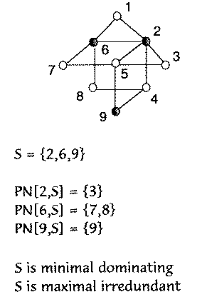 E=- S, PN[u,S] # 0, i.e. every vertex in S has at least one private neighbor. [Cockayne, Hedetniemi and Miller, 19781
