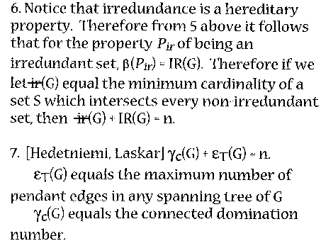 Theorem. Every minimal dominating set S is a maximal iryedundant set.