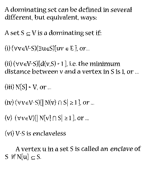 This suggests the following definition [Cockayne and Hedetniemi, 1977]: